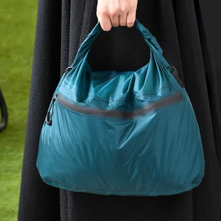 Terbuat dari nilon ripstop berdensitas tinggi untuk ketahanan air yang sangat baik, tas tipis, ringan, dan tahan air ini mampu menahan tumpahan/hujan deras yang tak terduga. Fleksibilitasnya membuatnya cocok untuk berbagai kesempatan, mulai dari olahraga hingga aktivitas luar ruangan.