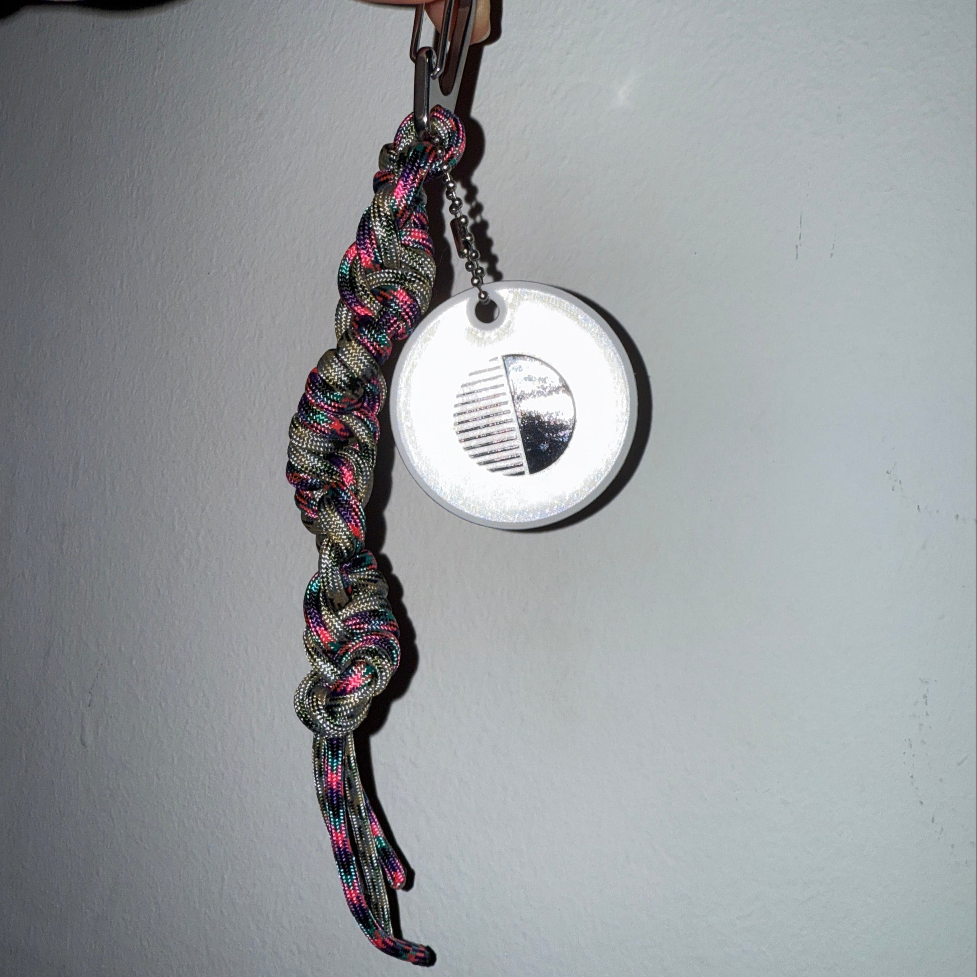 Bahan: 550 Paracord, baja tahan karat, label logo reflektor PVC